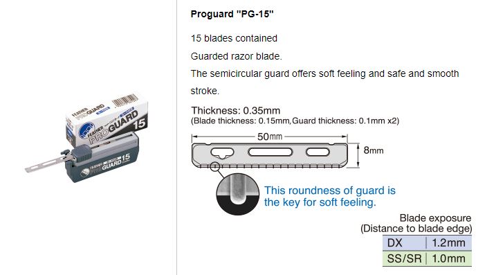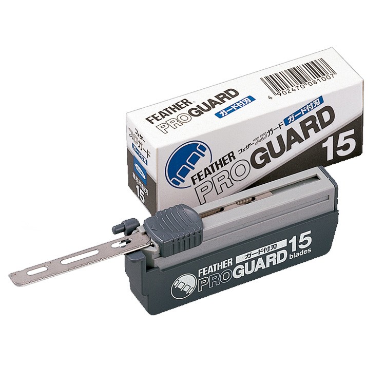 Feather Proguard PG-15 on suunniteltu erityisesti mukavuutta ja turvallisuutta ajatellen. Jokaisessa terässä on suoja, joka luo suojuksen terän reunan ja ihon väliin. Terät ovat valmistettu ruostumattomasta teräksestä, jolla on erinomaiset sitkeys- ja korroosionkestävyysominaisuudet. Tämän lisäksi terä on päällystetty platinaseoksella kestävyyden lisäämiseksi.