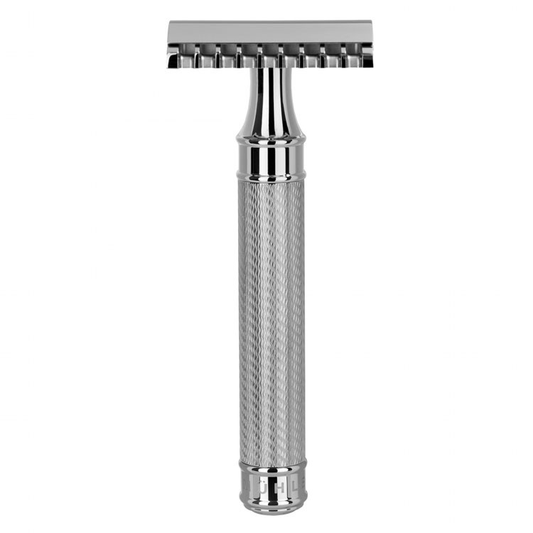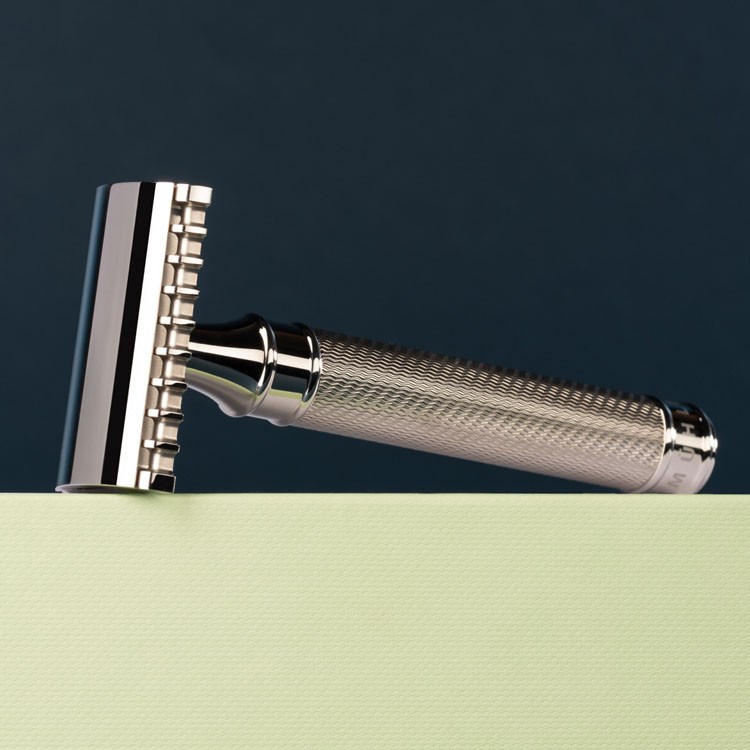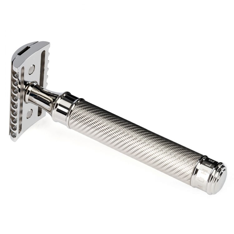 Vasta 10-vuotias, mutta silti jo legenda. R41 partahöylän juhlaversio, R41 GS on valmistettu kokonaan kirurgisesta ruostumattomasta teräksestä. Tätä on Mühlelta pyydetty kauan ja nyt se on vihdoin saatavilla. Varsi vastaa mitoiltaan Mühlen isokokoisempaa Grande-vartta, joten se tuntuu kädessä erittäin hyvältä ja luonnolliselta. Varsi on normaalia versiota aavistuksen pidempi, halkaisijaltaan suurempi ja tätä myötä myös muutaman gramman painavampikin. Varren kuvioinnin ansiosta pysyy partahöylä myös hyvin otteessa. Kiillotettu ruostumaton teräs takaa kiiltävän ulkomuodon legendaariselle R41 GS:lle.