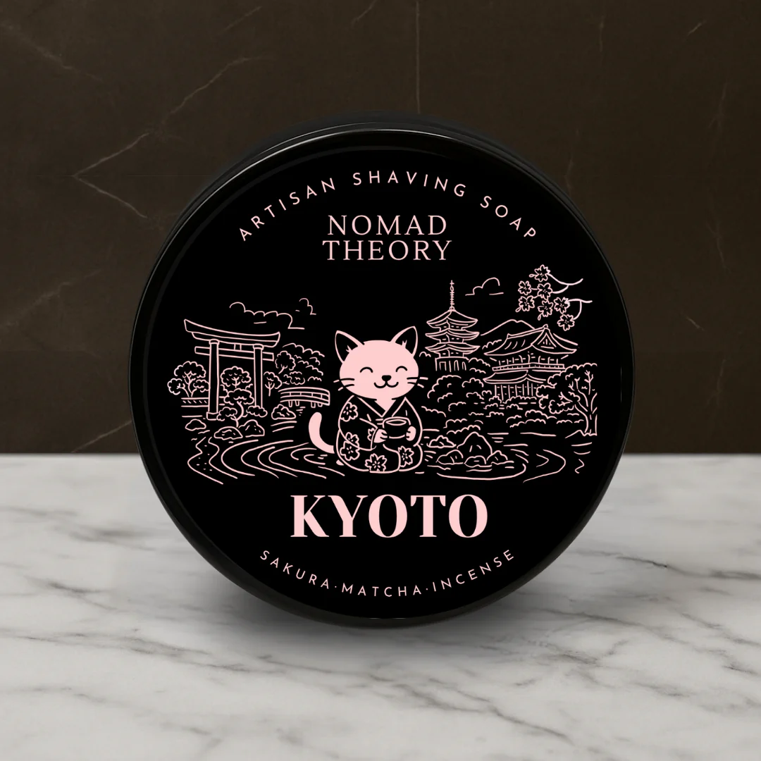 Kyoto on ylellinen talipohjainen parranajosaippua, joka yhdistää kirsikankukan, matchan ja japanilaisen suitsukkeen tuoksut rauhoittavaksi aistielämykseksi. Sen ravitseva koostumus tarjoaa erinomaisen vaahdon ja hoitaa ihoa syvältä jokaisella ajolla.