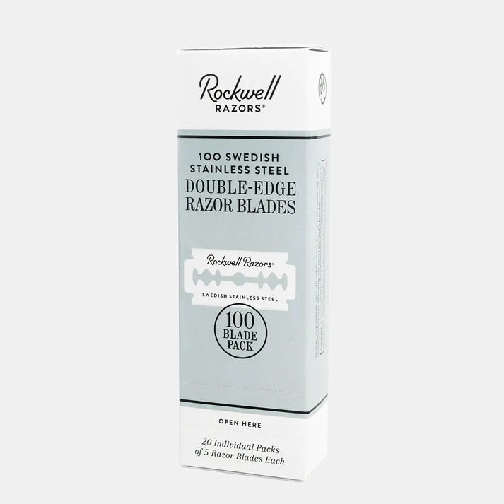 Varaa Rockwell Double Edge partahöylääsi teriä tällä 100 kappaleen pakkauksella! Sopii noin 2 vuoden parranajoihin.