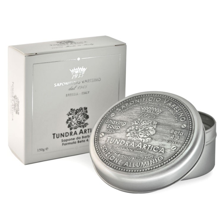 Saponificio Varesino Tundra Artica Beta 4.3 (150g) saatavana nyt ”Aluminum Edition” versiona. Parranajosaippua on pakattu tyylikkääseen kohokuvioituun alumiiniseen purkkiin. Nimi johtaa juurensa Arktiselta Tundralta, jossa kasvaa myös tässä saippuassa käytettyjä kasveja: