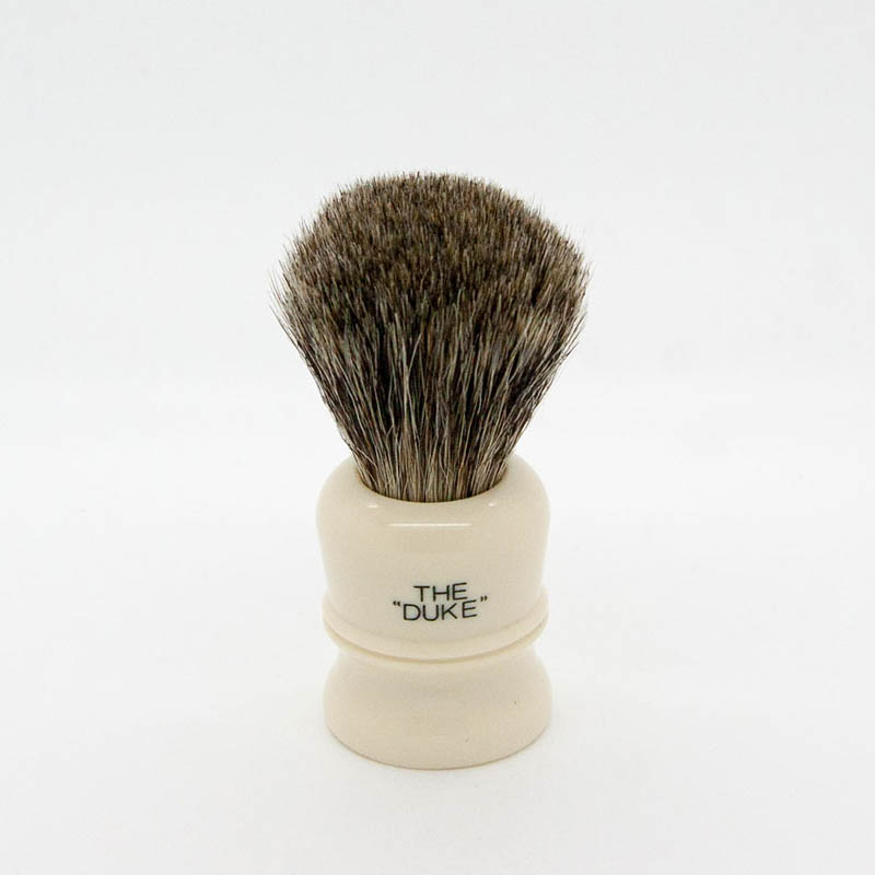 Duke 2 Pure Badger on mäyränharjaksilla varustettu partasuti, jonka solmun koko on 21mm. Kahva on valmistettu hartsista ja norsunluun värinen.