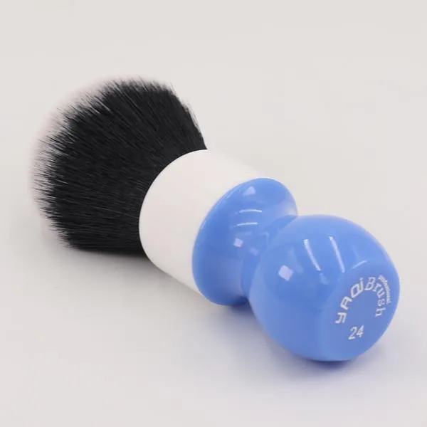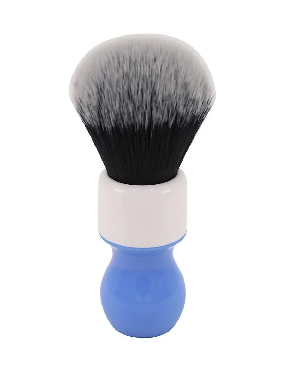 Synteettisiä Tuxedo-harjaksia sisältävä partasuti, jossa ergonominen hartsista valmistettu sinivalkoinen kahva. Kahva on myös muotoiltu siten, että se pysyy tukevasti kädessä parranajon aikana.