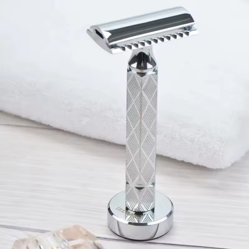 Elegantti teline partahöylällesi, joka on valmistettu kromatusta alumiinista. Pohjassa pehmeää kangasta.